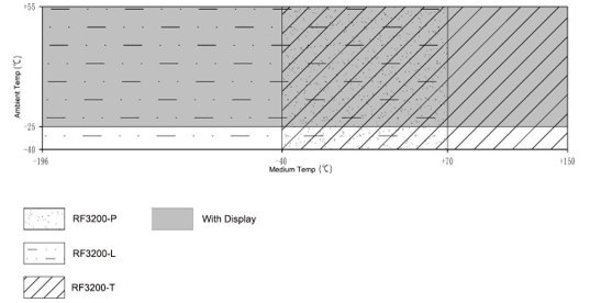 유체의 온도 | RF3200-P: -40℃~+70℃ RF3200-L: -196℃~+70℃ RF3200-T:-40℃~+150℃ |